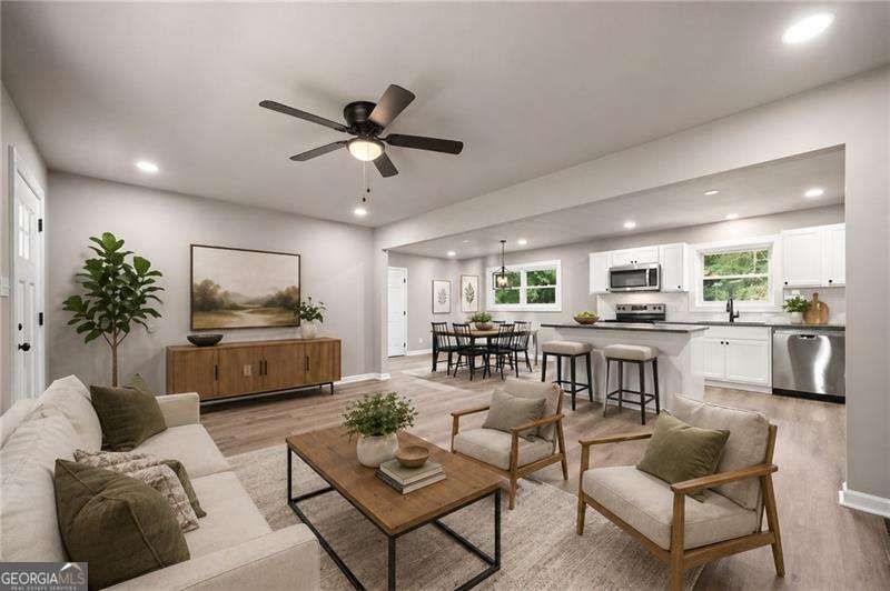 Beautifully Renovated Brick Ranch on Half an Acre in Villa Rica! Don't miss this fully updated 3 bedroom, 2 full bath, 1 half bath brick ranch offering comfortable, move-in ready living in Carroll County. Nestled on a half-acre lot with a private, wooded backdrop, this home delivers the space and charm buyers are looking for at an outstanding value. Step inside to a bright, open-concept living and kitchen area featuring stunning new LVP flooring, white shaker cabinets, granite-look countertops, a center island with bar seating, subway tile backsplash, and a full suite of stainless steel appliances. The layout flows effortlessly from the kitchen into the living space, making everyday living and entertaining a breeze. The spacious primary suite offers a private bath with updated vanity and stylish finishes. Additional bedrooms are generously sized with great natural light and easy access to the second full bath. A dedicated laundry room with full-size washer and dryer hookups adds everyday convenience. Outside, enjoy a brand new deck perfect for relaxing or entertaining, a covered carport, and a detached storage building with lean-to, offering excellent additional storage or workshop potential. The large, level-to-gently-rolling yard is surrounded by mature trees for added privacy. Additional highlights include central heat and air, public water, and a septic system. No HOA. Conveniently located in Villa Rica with easy access to shopping, dining, and major commuter routes. This one checks all the boxes - schedule your showing today!