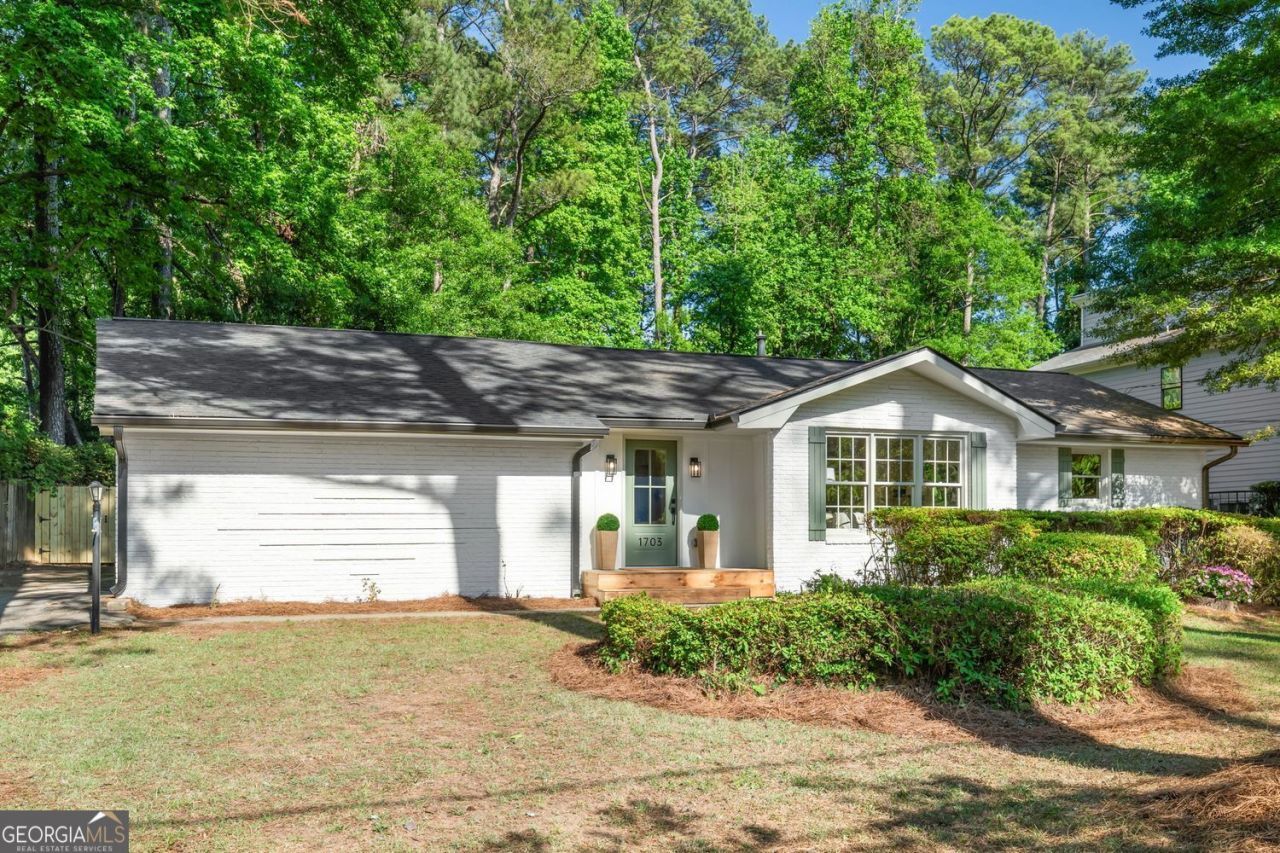 Tucked inside the perimeter in a charming neighborhood, this fully renovated ranch on a LARGE LOT offers the perfect blend of modern updates and timeless character. From the moment you enter, the home feels bright, open, and inviting. A welcoming foyer flows seamlessly into the main living space and sunroom beyond, creating an effortless layout that is both open and cozy. The sunroom offers incredible flexibility as a second living area, dining space, or home office. Gleaming real HARDWOOD FLOORS run throughout, while NEW WINDOWS fill the home with natural light all day, highlighted by stunning afternoon golden hour light that pours into the living room, creating a warm, inviting atmosphere. Just off the living room, the luxury eat-in kitchen is both beautiful and functional, featuring crisp white cabinetry, Taj Mahal QUARTZITE countertops, a dedicated coffee bar, and abundant storage. Every major system has been thoughtfully updated, including a new TANKLESS WATER HEATER, newer HVAC system, along with a NEW ROOF and NEW PLUMBING, allowing the home to live like new construction while still maintaining the character and charm that make it feel special. Set on a generously sized, flat lot, the backyard is fully fenced and offers exceptional privacy, with only one neighboring home and no home behind. Surrounded by mature trees and lush greenery, the setting feels peaceful and tucked away, a rare find for inside the perimeter living. Whether you envision a future pool, garden, or outdoor entertaining space, the possibilities here are endless with no HOA. Another unique space being the large storage shed in the back adds even more functionality. A side-entry TWO-CAR attached GARAGE, paired with a double driveway, provides ample parking for guests and everyday convenience with only one step into the kitchen from the garage. Ideally located less than a mile from I 285, the home offers easy access to everything while still feeling quietly removed. The neighborhood is known for its walkability, dog friendly feel, and strong sense of community. Daily essentials are just five minutes away, with Publix, Home Depot, and Target nearby, along with close proximity to the highly anticipated Lula Hills development. Zoned for a top rated elementary school. One level living at its best... move in ready, thoughtfully designed, and effortlessly livable. A home that feels as good as it looks, and lives even better day to day.